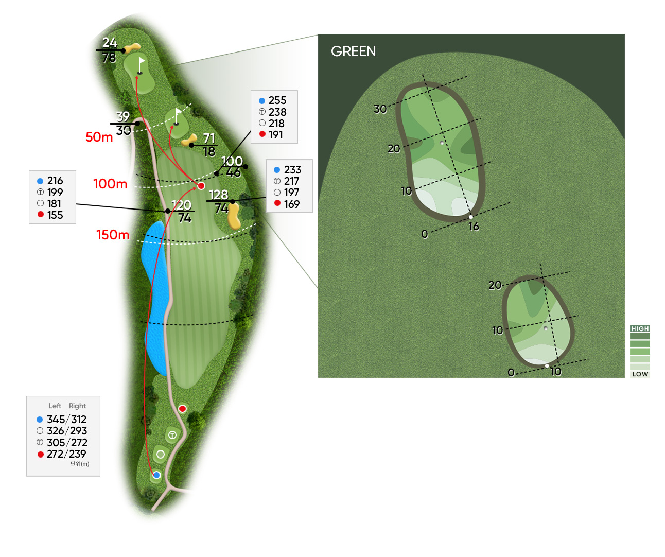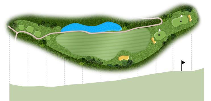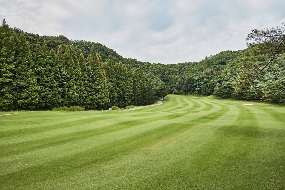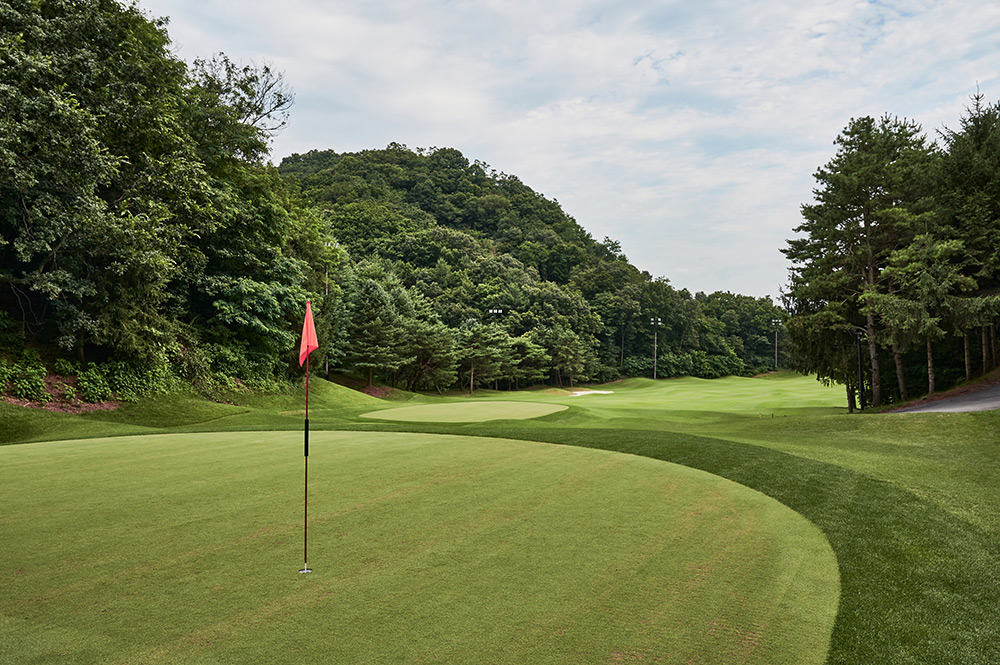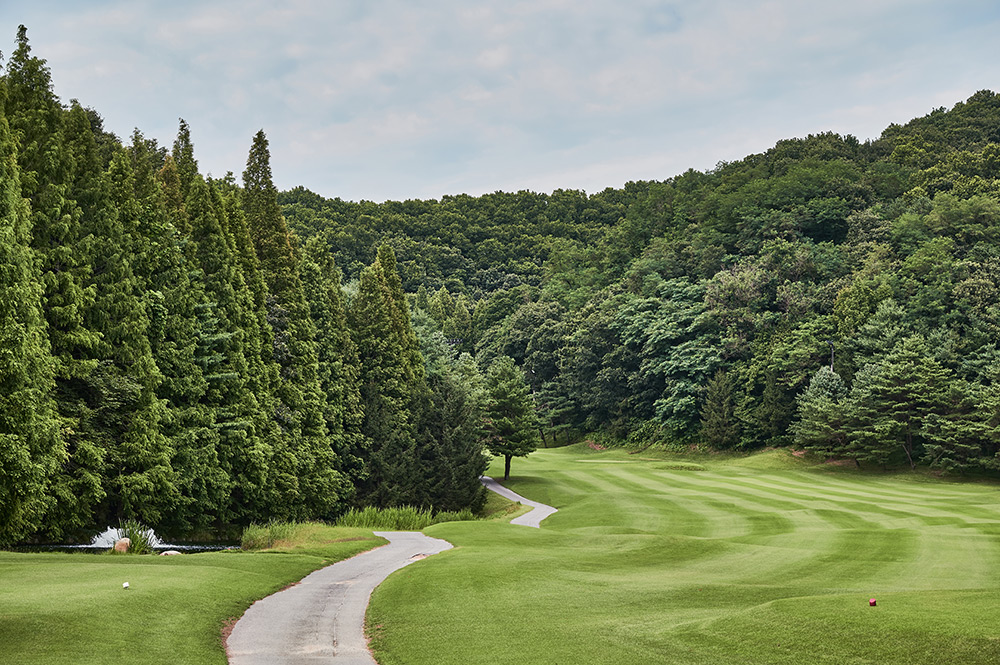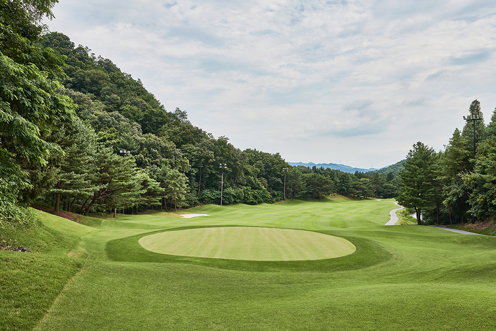 Par 4 / Handicap 8 긴 연못을 끼고 펼쳐지는 오르막 지형의 훼어웨이로 어느| 구분 | 1홀 | 2홀 | 3홀 | 4홀 | 5홀 | 6홀 | 7홀 | 8홀 | 9홀 | 합계 |
