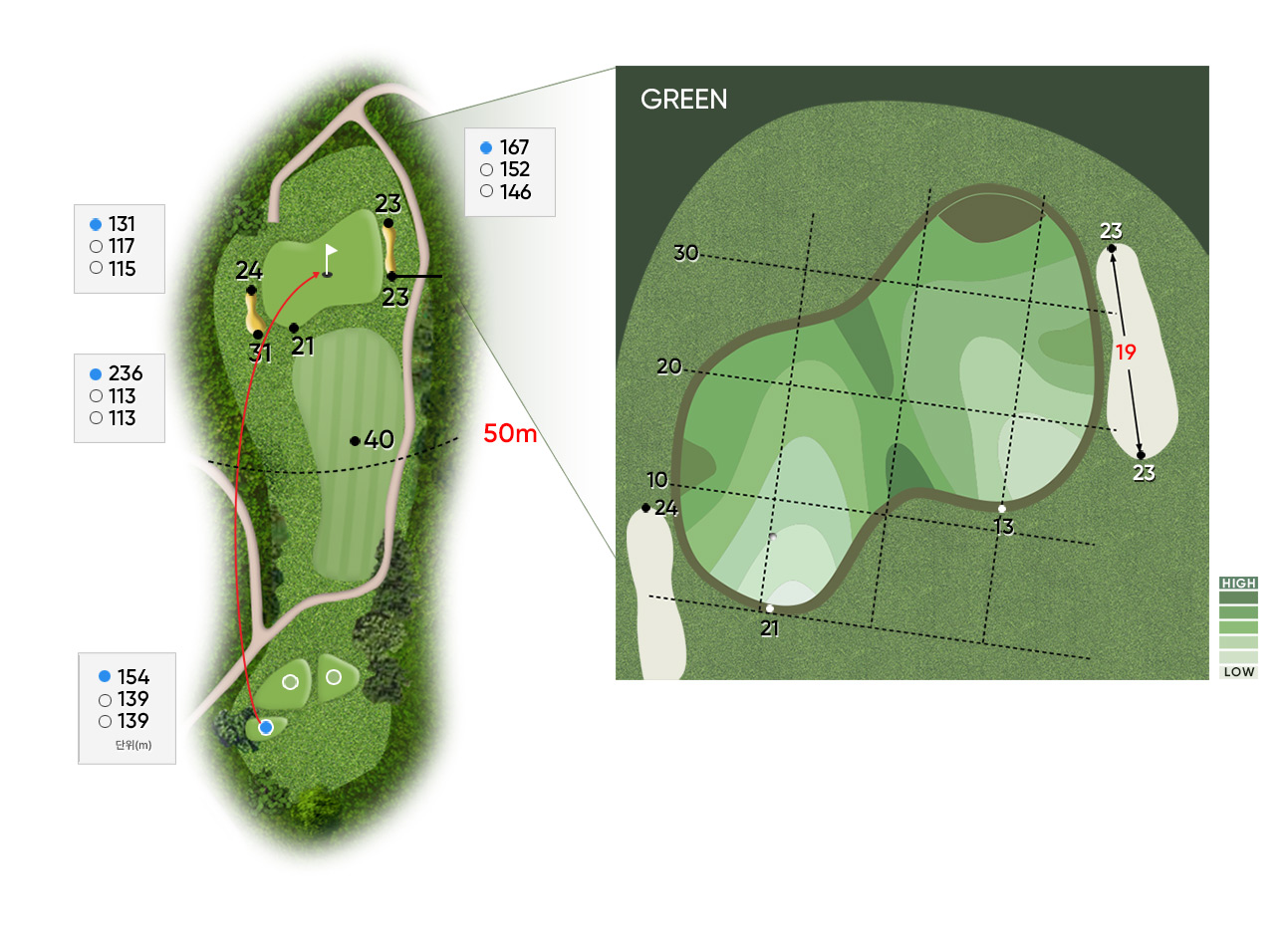 Par 3 / Handicap 3 오르막에 위치한 그린! 수줍은 듯 반겨주는 깃발! 가까이 다가서는| 구분 | 1홀 | 2홀 | 3홀 | 4홀 | 5홀 | 6홀 | 7홀 | 8홀 | 9홀 | 합계 |