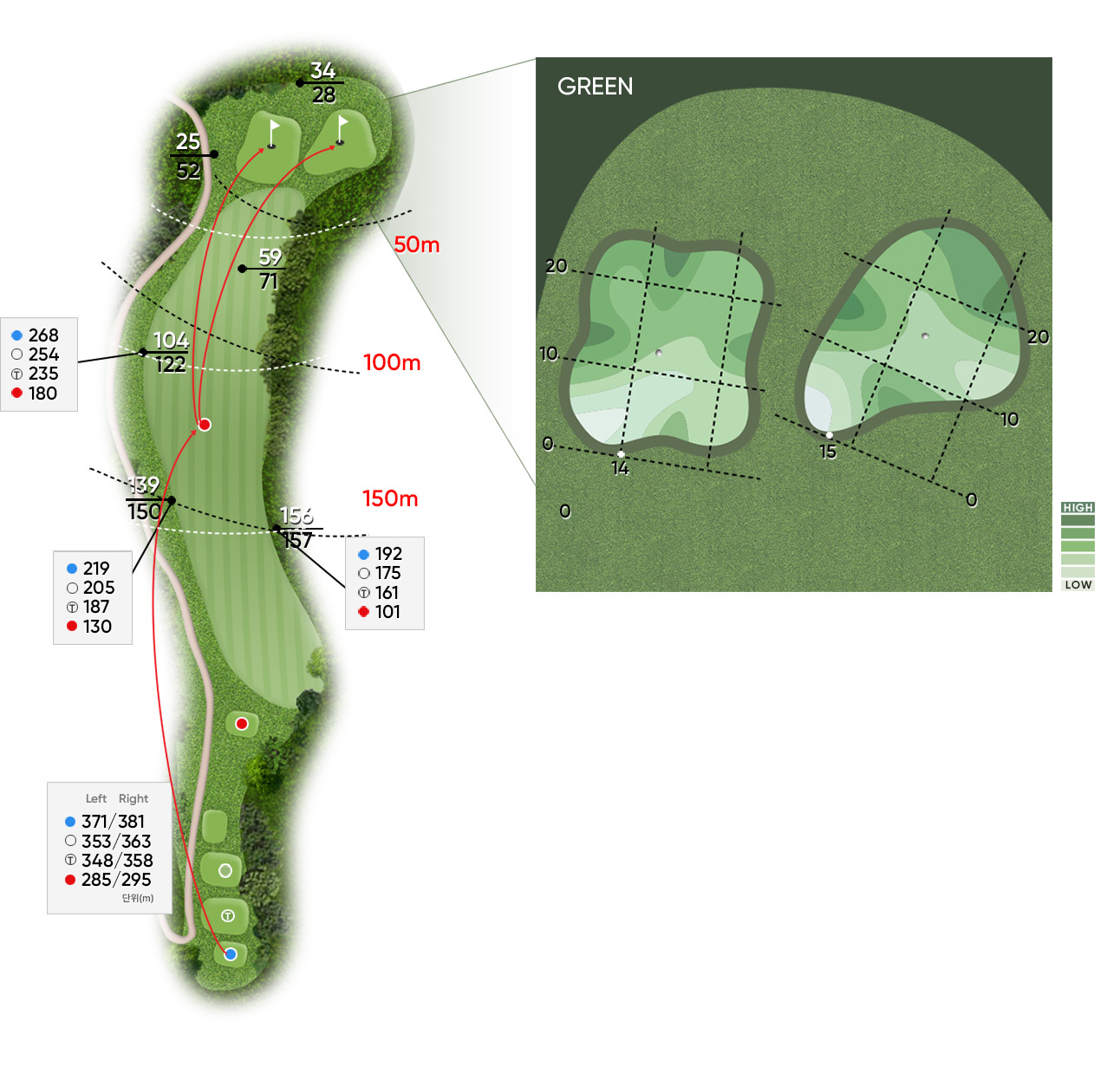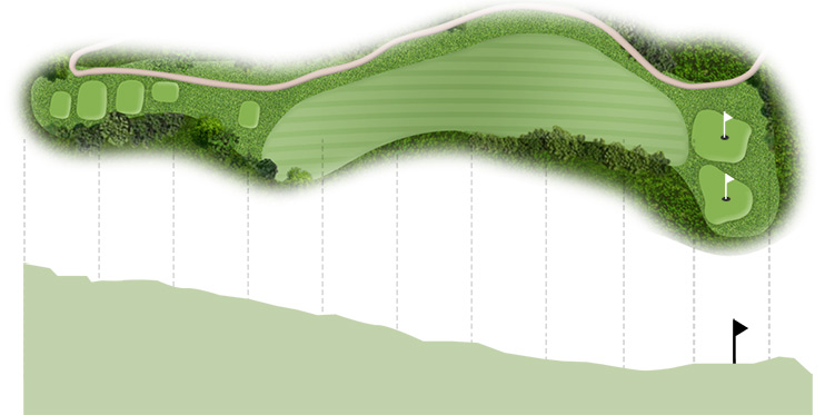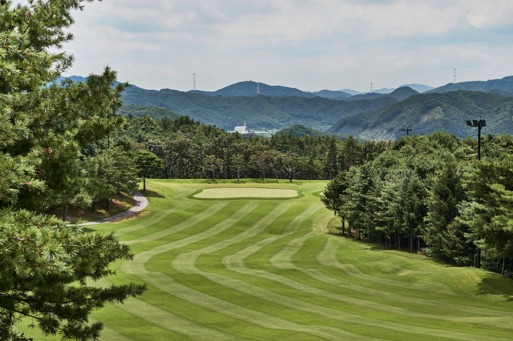 Par 4 / Handicap 7 오른쪽 천길 낭떨어지가 골퍼의 가슴을 압도하는 홀로서 숨을| 구분 | 1홀 | 2홀 | 3홀 | 4홀 | 5홀 | 6홀 | 7홀 | 8홀 | 9홀 | 합계 |