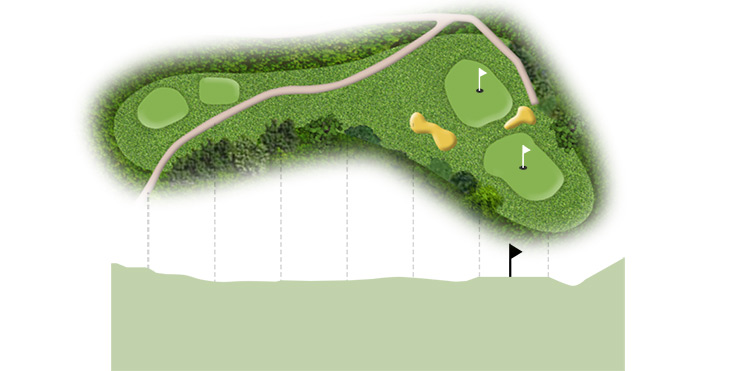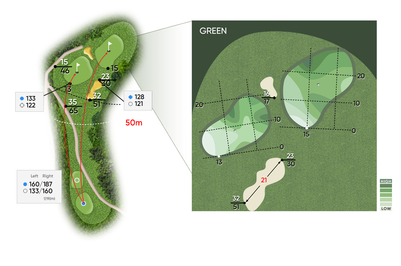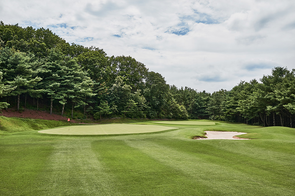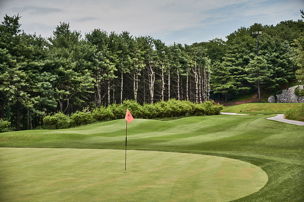 Par 3 / Handicap 6 지척의 깃발을 바라보면 일생일대의 홀인원을 기대하는 마음에| 구분 | 1홀 | 2홀 | 3홀 | 4홀 | 5홀 | 6홀 | 7홀 | 8홀 | 9홀 | 합계 |