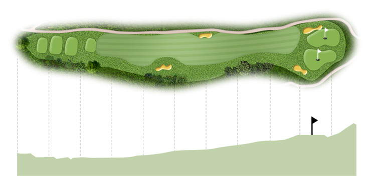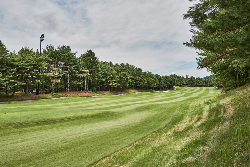 Par 4 / Handicap 8 좌측 벙커에 유의하여 타선을 잡으면 뜻한 대로 이루어지는| 구분 | 1홀 | 2홀 | 3홀 | 4홀 | 5홀 | 6홀 | 7홀 | 8홀 | 9홀 | 합계 |
