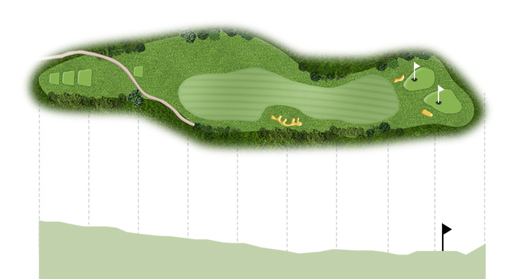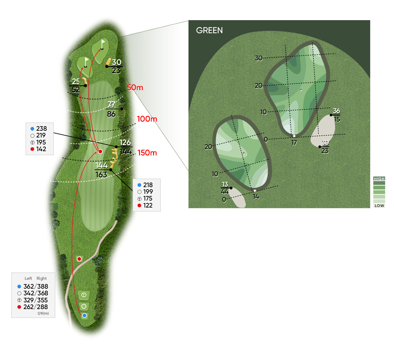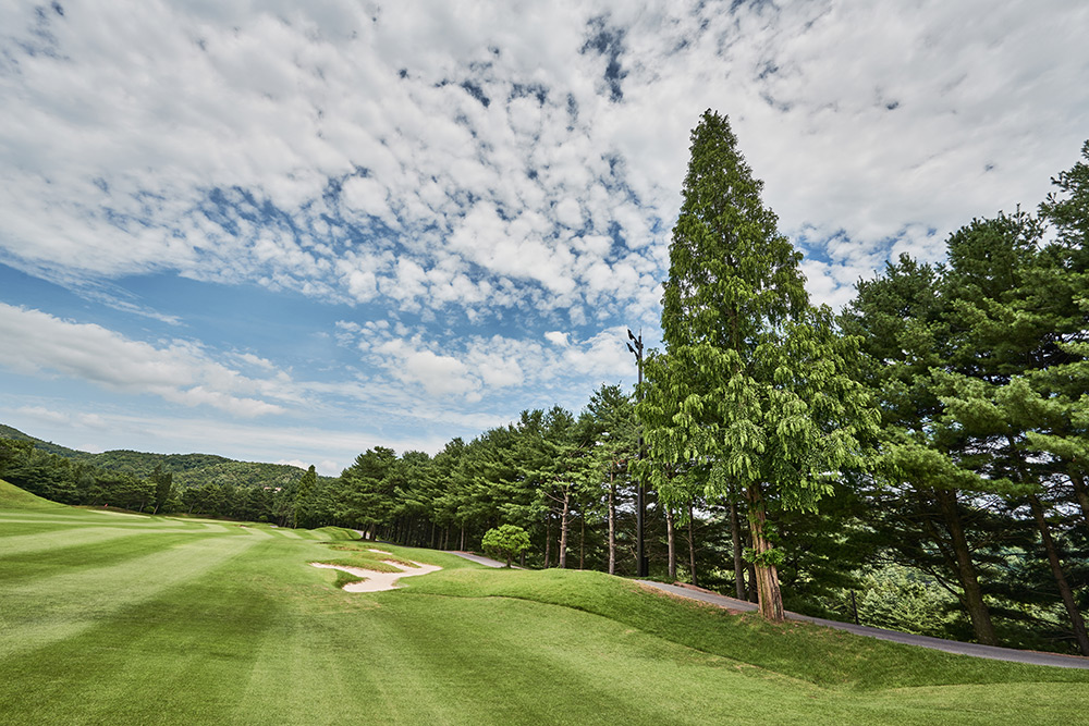 Par 4 / Handicap 1 발아래 굽어 펼쳐진 긴 하향의 홀이다. 우측의 함정에 유의| 구분 | 1홀 | 2홀 | 3홀 | 4홀 | 5홀 | 6홀 | 7홀 | 8홀 | 9홀 | 합계 |